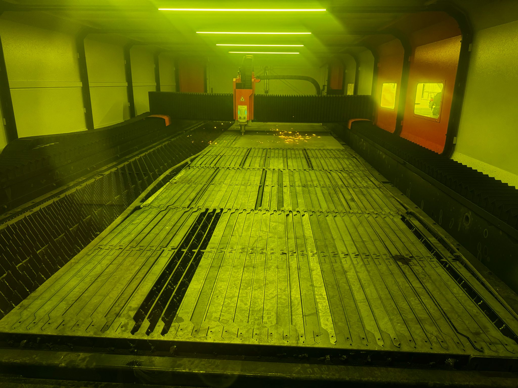 Nukon 6kW Fiber Lazer makinemiz ile yüksek kaliteli ve hızlı termin süresi ile yüksek tonajlı projeleri minimum fire ile tamamlamaktayız.